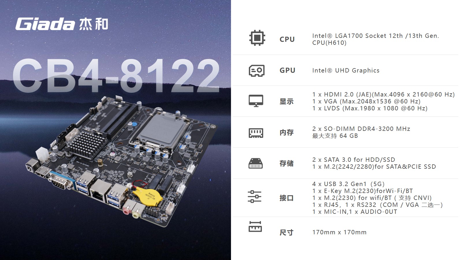 针对客户的多任务处理需求,系统选用2个DDR4 SO-DIMM插槽,支持高达64GB的内存容量,同时配置支持PCIe 3.0通道的M.2接口以及2 x SATA接口,用于连接硬盘。