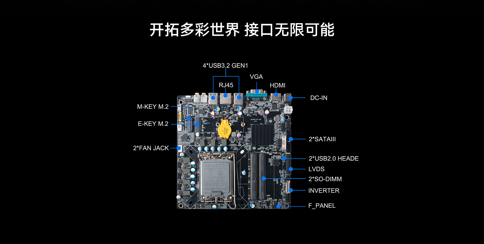 搭载双通道SO-DIMM DDR4-3200MHz内存、1 x M-Key M.2 (2242/2280) SSD和 2 x SATAIII存储。综合考虑到了大部分用户的使用场景需求,搭载Intel® UHD Graphics芯片,支持DirectX 12.1,OpenGL 4.5,OpenCL 3.0,能够为用户带来出色的计算和图形处理性能,无论是运行并载入游戏、数据传输还是平面设计如(PSLRPR等软件),都可以赋予用户更加极致流畅的使用体验。