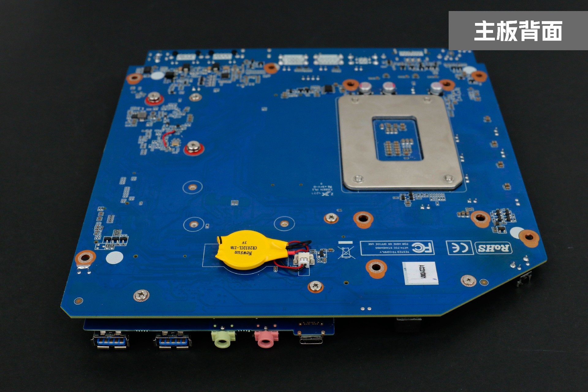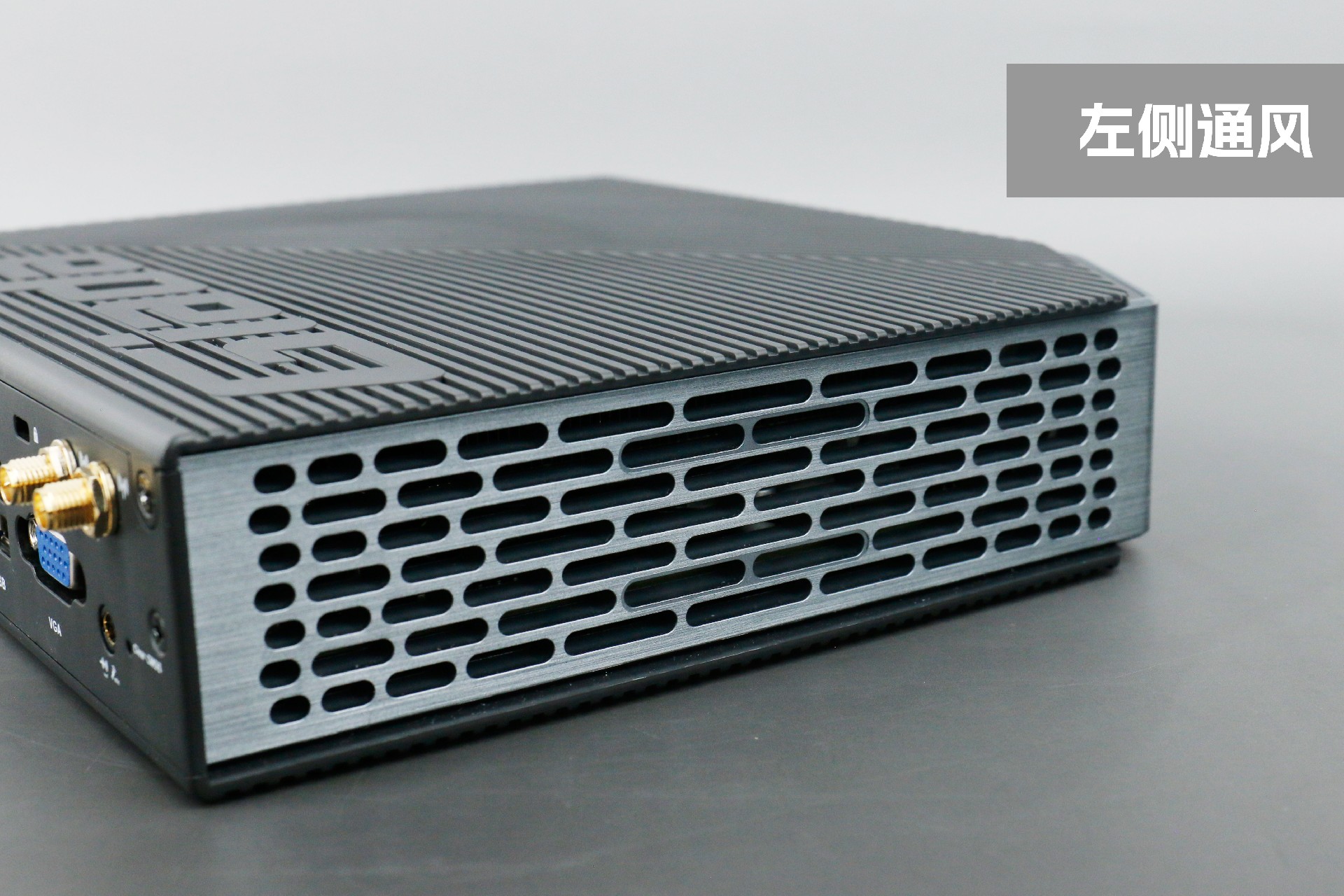 背面为1个DC-IN圆形电源接口,1个千兆网口RJ45,一个COM口,1个HDMI和1个VGA视频接口,3个USB3.2 Gen2和3 x USB2.0接口,以及1个二合一音频口及WiFi连接线,兼容全部主流外设,满足更多应用拓展。
