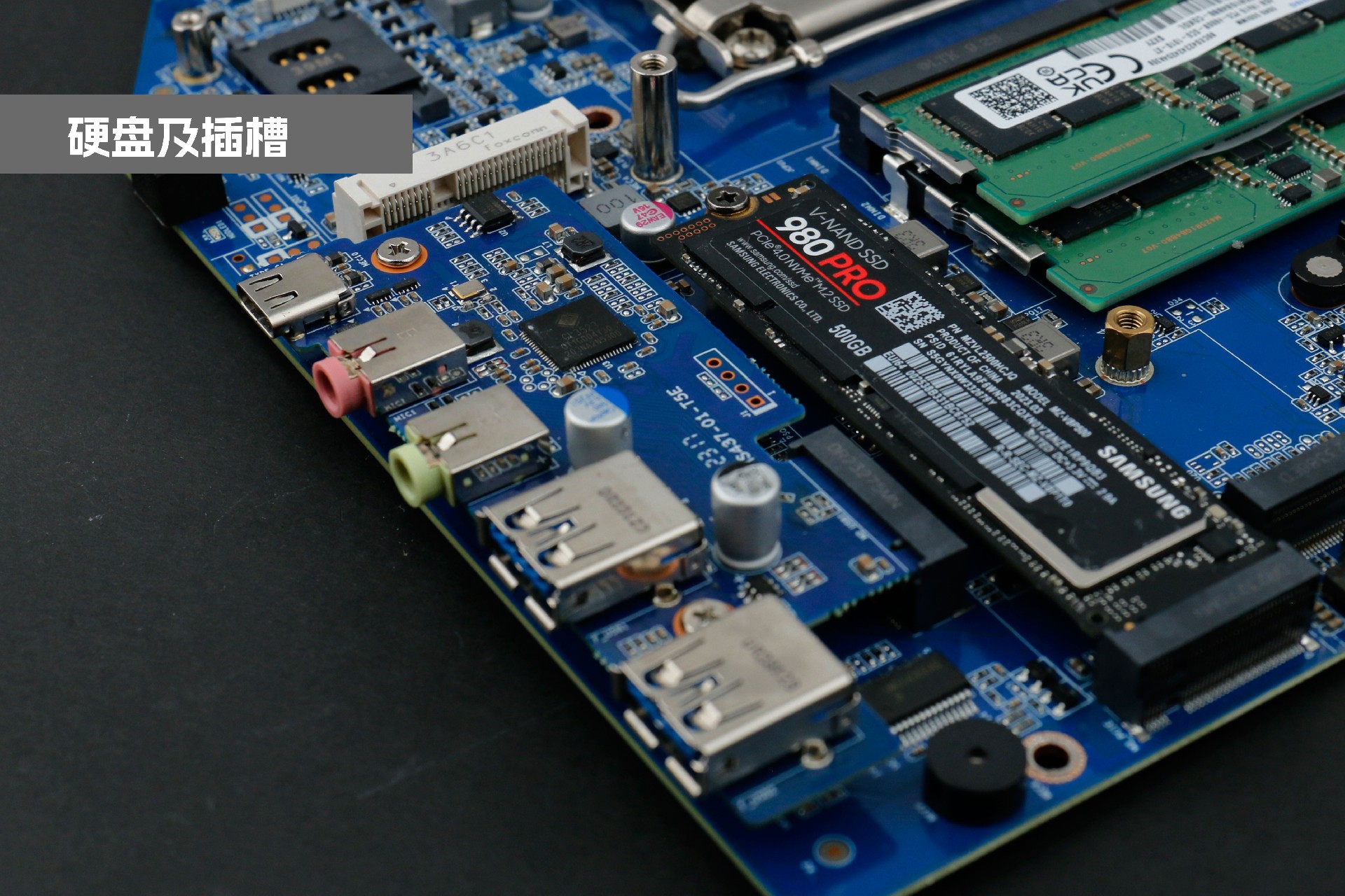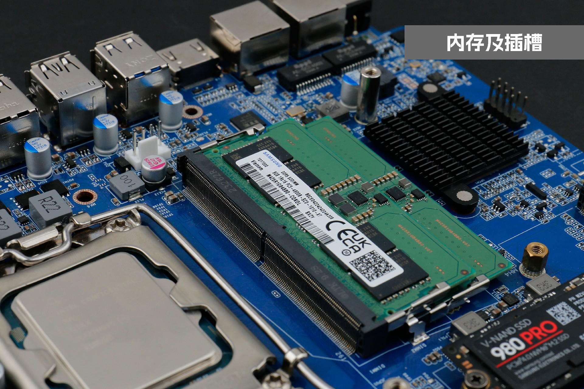 开云桌面云终端Y-BOX P3系统中部是内存插槽,采用双通道笔记本内存槽设计,最大支持容量可达64GB,最高支持DDR5-5600MHz频率,比 DDR4 至高标准数据速度 3200MT/S多传输 1.75 倍,横插的形式可以减少系统的占用体积,使整体机身更紧凑,内存顶部的风扇起到高效散热的作用。