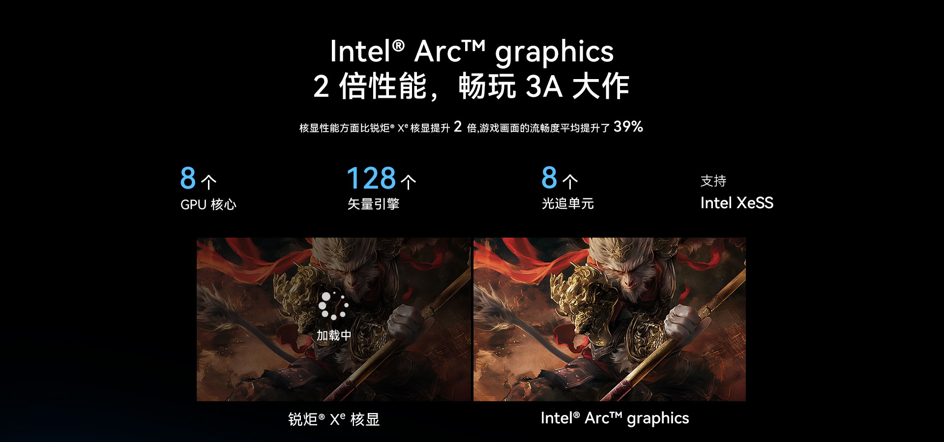 开云科技N601拥有强大的图像性能,无论是图形创作,还是3A游戏,英特尔锐炫™GPU可以让用户充分享受更高的画面质量和更流畅的游戏体验。