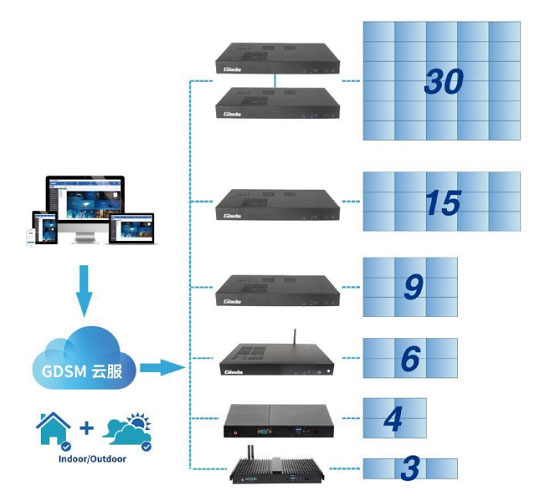 开云科技多屏拼接控制器与GDSM系统结合,聚焦市场需求,打造的新一代数字标牌软硬一体化应用平台。在数字标牌拼接管理、操作维护以及系统前端兼容扩展方面具备变革性创新,可以进一步为客户带来价值提升,助力智慧零售、政企办公、医疗服务、公共交通、酒店娱乐以及更多行业进行数字化、智能化升级。