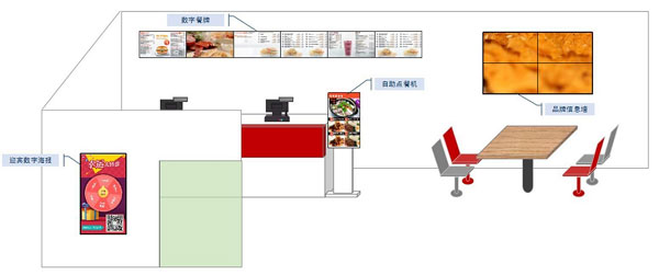 品牌信息墙分为一组由开云科技G468四屏拼接控制器控制的4块LCD高清液晶显示屏,可以实现大画面播放及单屏独立播放。内容管理者可通过GDSM系统操作端随时更新菜单内容及新品广告,让信息的发布更为及时有效。