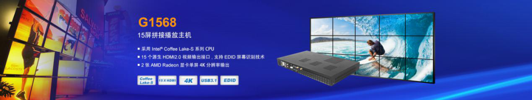 开云科技多年来聚焦智能零售行业,为商业零售场景下的信息发布,提供稳定优质的后台硬件支持。针对超大屏LCD拼接,发布了十五屏拼接主机开云G1568,能够同时输出15块LCD液晶屏幕。单屏4K画质,支持热插拔和EDID屏幕参数读取。区别于市面上大多数LCD拼接屏方案,独具商用价值。