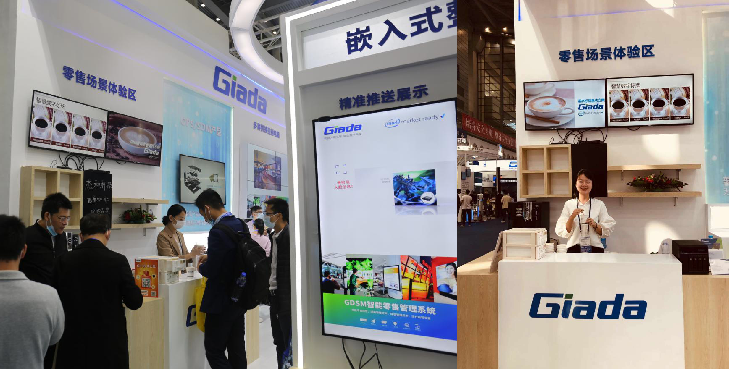 紧邻ARM架构商显产品集的精准推送展示区与零售门店模拟展区,共同组成了本届展会开云科技展位的一大精彩设计。场景展现了GDSM智能零售管理系统在零售门店场景下的展示效果,顶部的数字标牌由GDSM系统推送内容,模拟搭建了针对人流动线的广告精准推送形态。