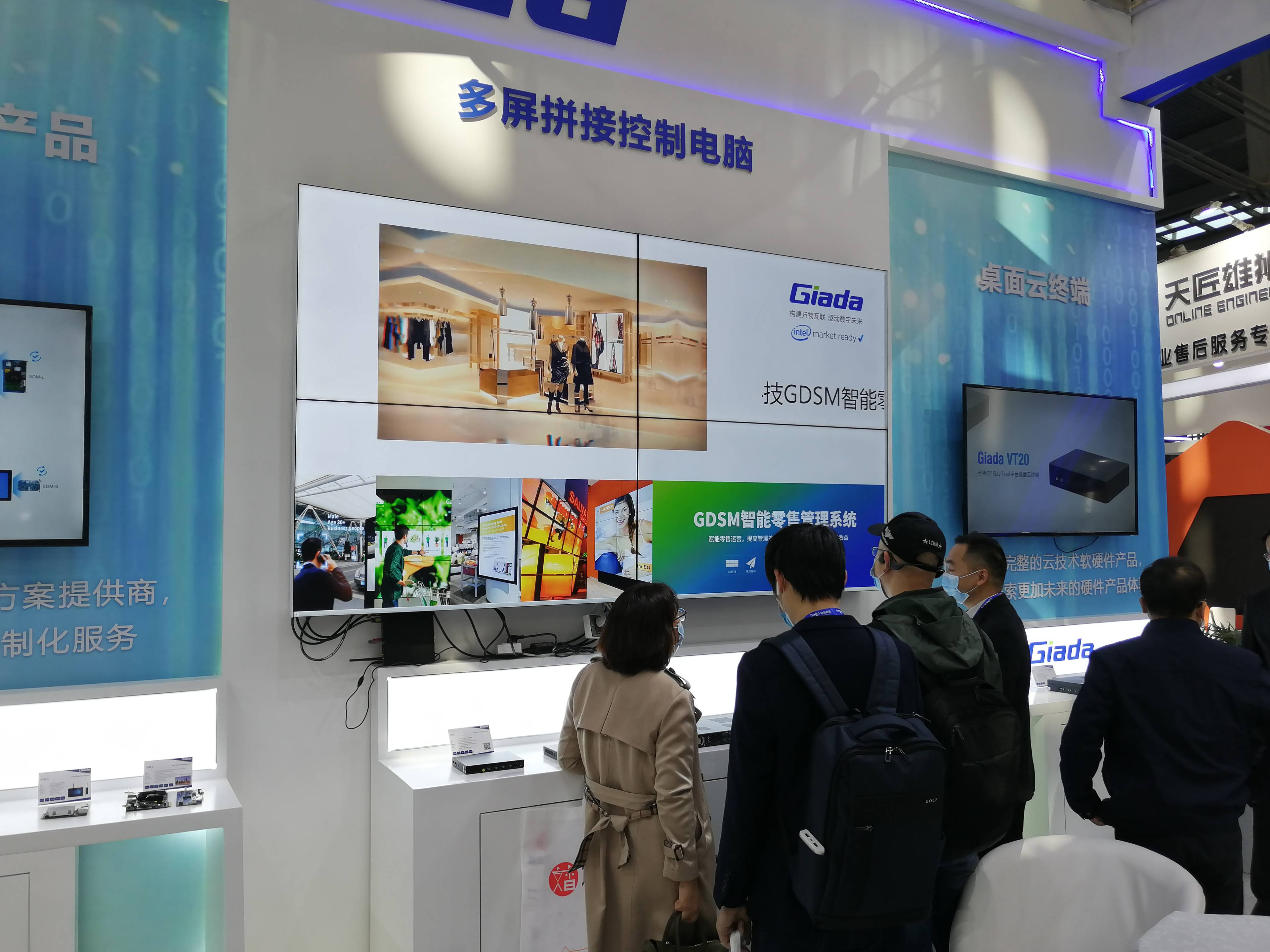 步入开云科技展位,首先呈现的是开云科技近年的商用显示ARM产品集和GDSM广告精准推送演示。开云科技DN系列媒体播放器分别使用了瑞芯微RK3288、RK3328和RK3399三款核心芯片;全部采用116mm*107mm*30mm的紧凑外观设计,轻便灵活;搭载RK3399的DN74媒体播放盒具备双屏4K异显输出能力,DN75在DN74的基础上额外扩展了HDMI-in视频输入接口,支持画中画或投屏显示。开云科技现场布署的所有单个屏幕都由DN系列媒体播放器作为信号源,GDSM智能零售管理系统下发的广告信息通过后台推送,再现了零售场景下如何管理多个分散布署的广告屏。