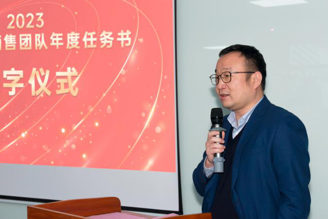 签约仪式中,国际营销中心业务代表刘正文和国内营销中心业务代表李喆发言,两位代表朴实的发言表示,销售人员必须要努力和坚持,要有愚公移山的精神才能成就了2022年的可喜成绩,同时完成2023年度目标必须怀着奋斗者的精神去努力拼搏,2023年kaiyun业务会冲到前线,紧贴市场,紧贴客户,抢夺订单。