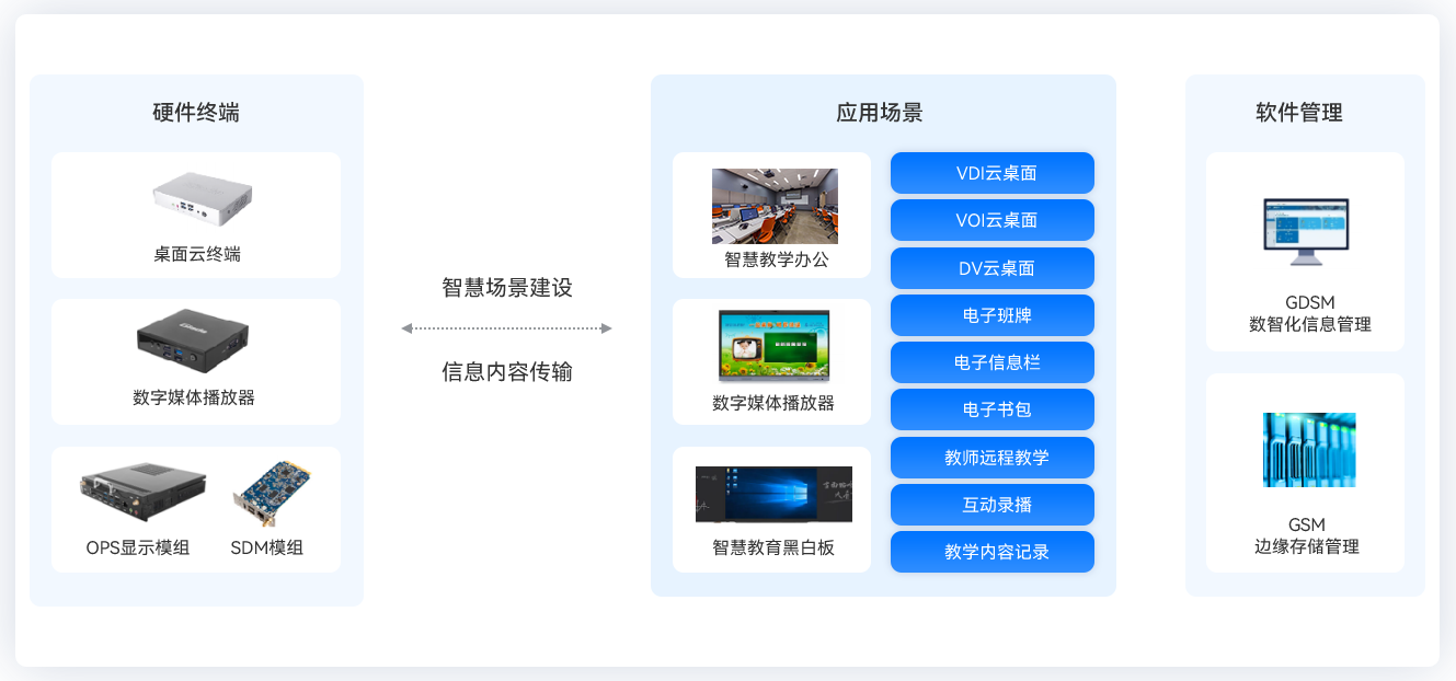 开云智慧校园解决方案是基于智能硬软件打造数字化教学场景,实现智慧课堂、智慧黑白板教学,建设多媒体信息发布平台,优化校园管理模式,让前沿科技融入实际教学,实现教育体系各类软硬件和各个角色之间的紧密连结,提升教学质量,最终推进教育数字化转型。