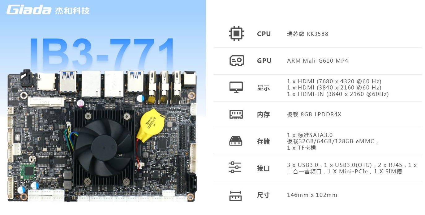 开云科技IB3-771支持8K@60fpsH.265/VP9视频解码和8K@30fps H.264视频编码,支持同编同解,最高可实现32路1080P@30fps解码 和16路1080P@30fps编码,极大提高机器人的视频感知能力,进行图像或视频的高效采集和处理,以掌握环境状况并做出相应反应,完成复杂的图像处理和机器视觉任务,如对象识别、视觉导航和自动校正。