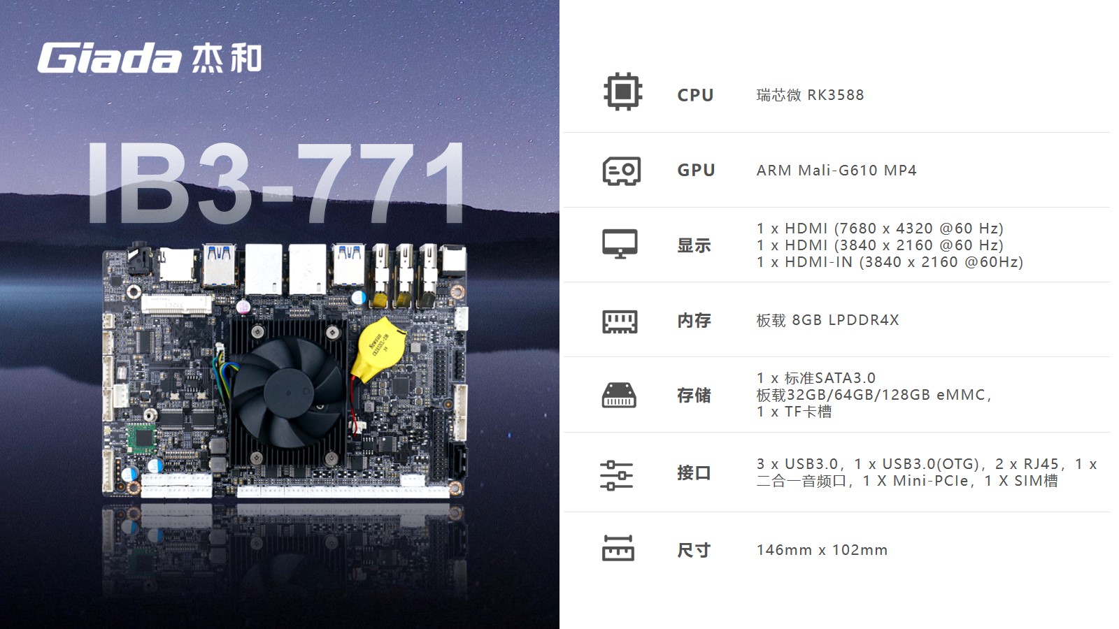 开云科技嵌入式系统IB3-771是8K人工智能系统,拥有轻算力的它可用于机器人、边缘计算、智能NVR、智能汽车、智慧大屏、AR/VR、ARM PC、智能自助终端等领域,还可用于监控、官方、餐饮、智能交通、文娱产业等对超高清视频需求旺盛的行业;
